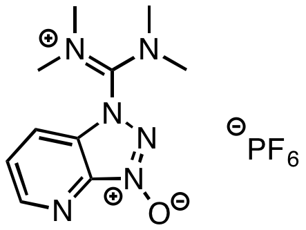 HATU (1-[Bis(dimethylamino)methylene]-1H-1,2,3-triazolo[4,5-b]pyridinium 3-oxide hexafluorophosphate, Hexafluorophosphate Azabenzotriazole Tetramethyl Uronium) is a reagent used in peptide coupling chemistry to generate an active ester from a carboxylic acid. HATU is used along with Hünig's base (N,N-diisopropylethylamine, DIPEA), or triethylami...