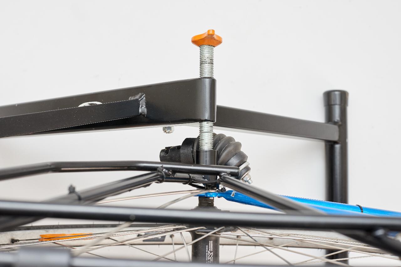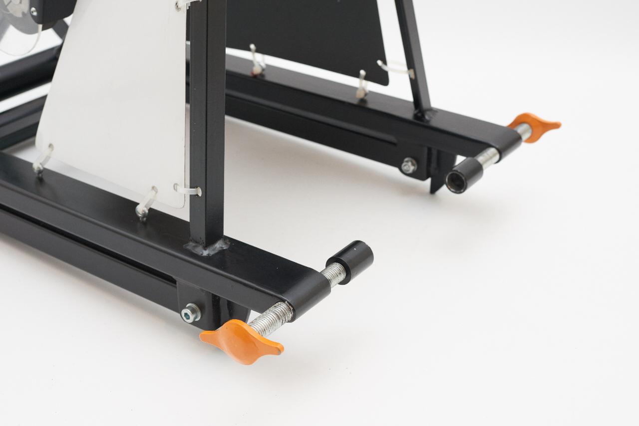 The height adjustment is one of the fastest things you can realise :-). For the turning knob we welded a small steel strip on a clamping ring. The rest of it are just ready-to-use standard parts.