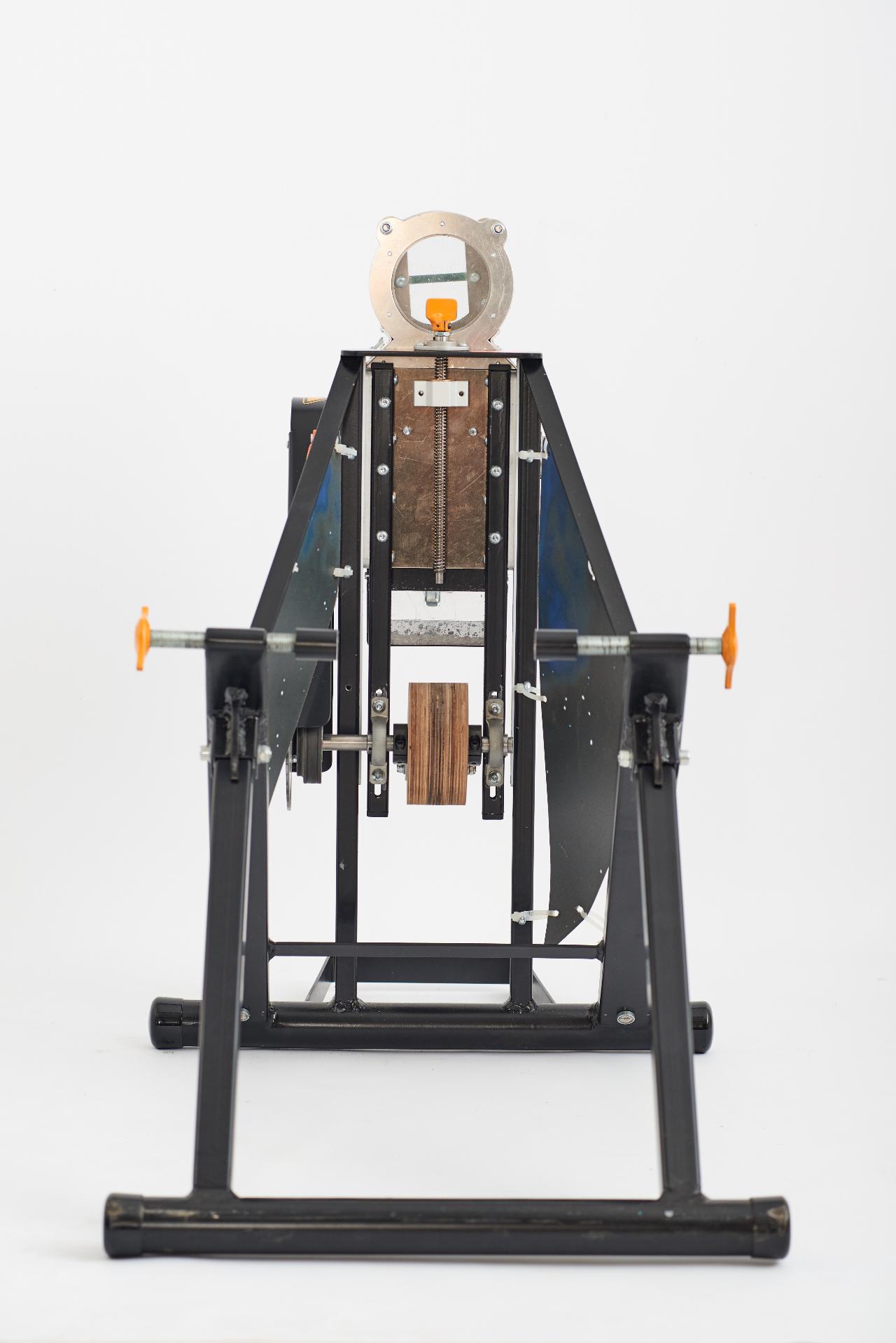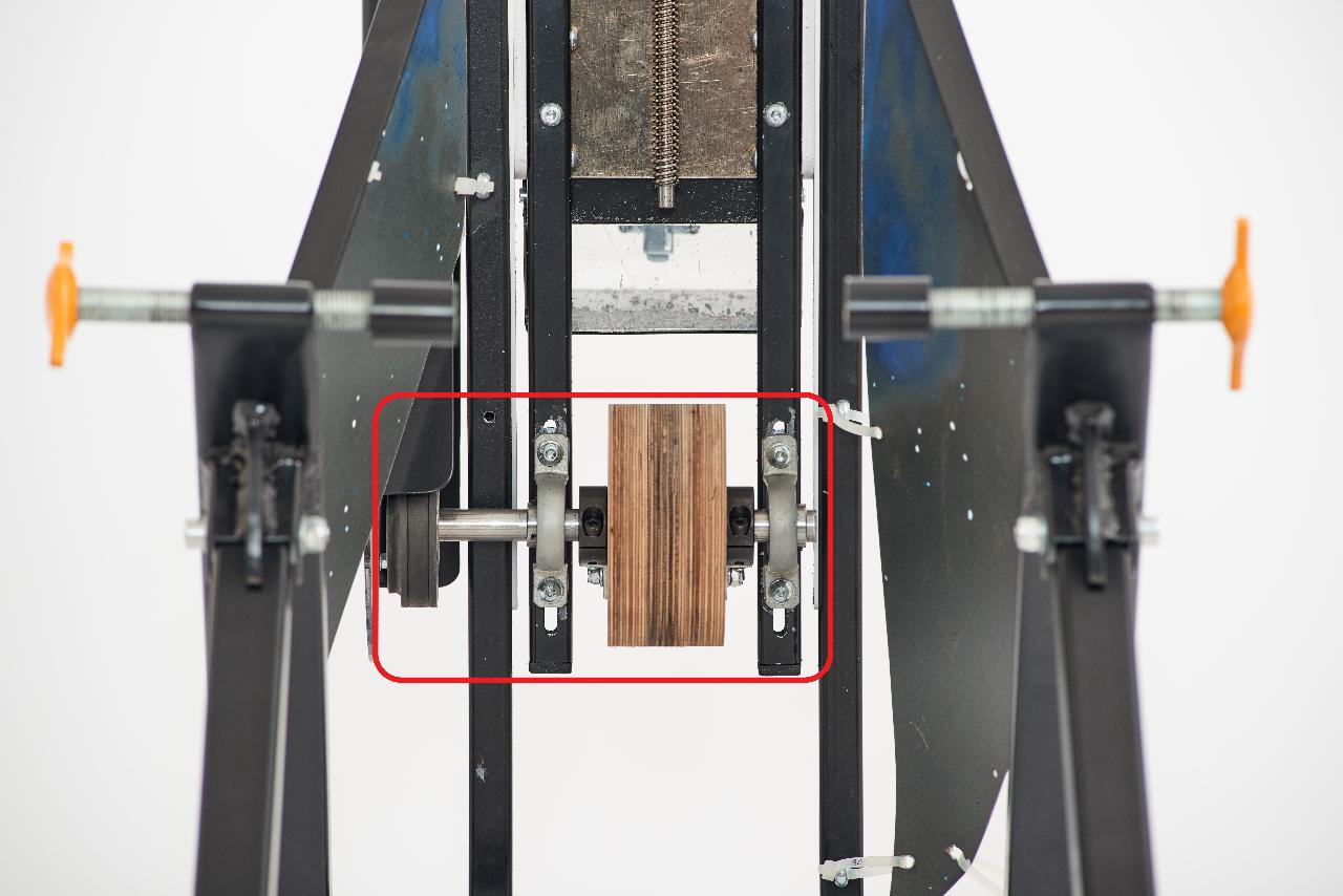 The friction wheel transfers the speed from the rear wheel to the cutting mill. We use plywood for the wheel because we can mill it with our own cnc machine. Nethertheless there are definitely better materials for the friction wheel, for example something out of plastic.