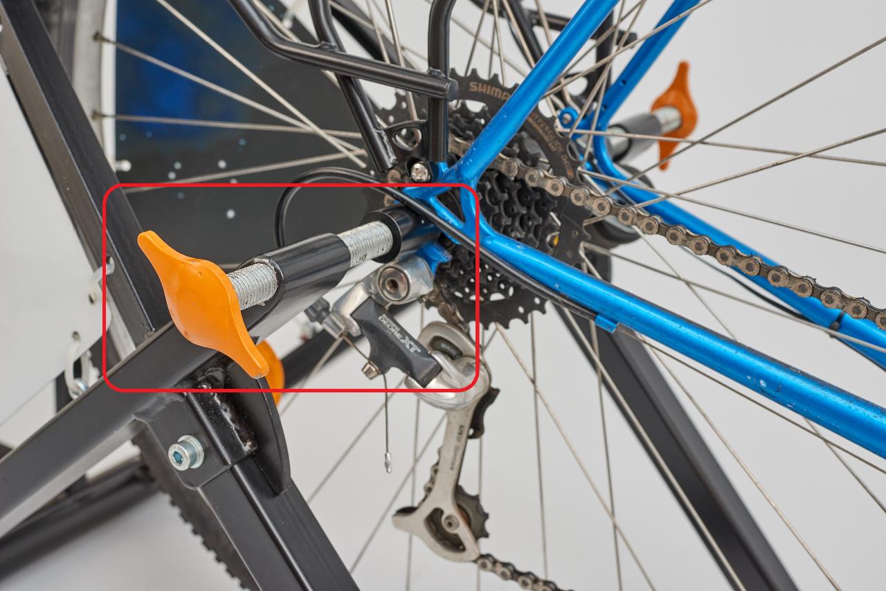 Another advice: welding the m16 nuts; make sure the two nuts are in one alignment. That's important to clamp the rear-wheel right in place. We take a long steel bar (14mm in diameter).