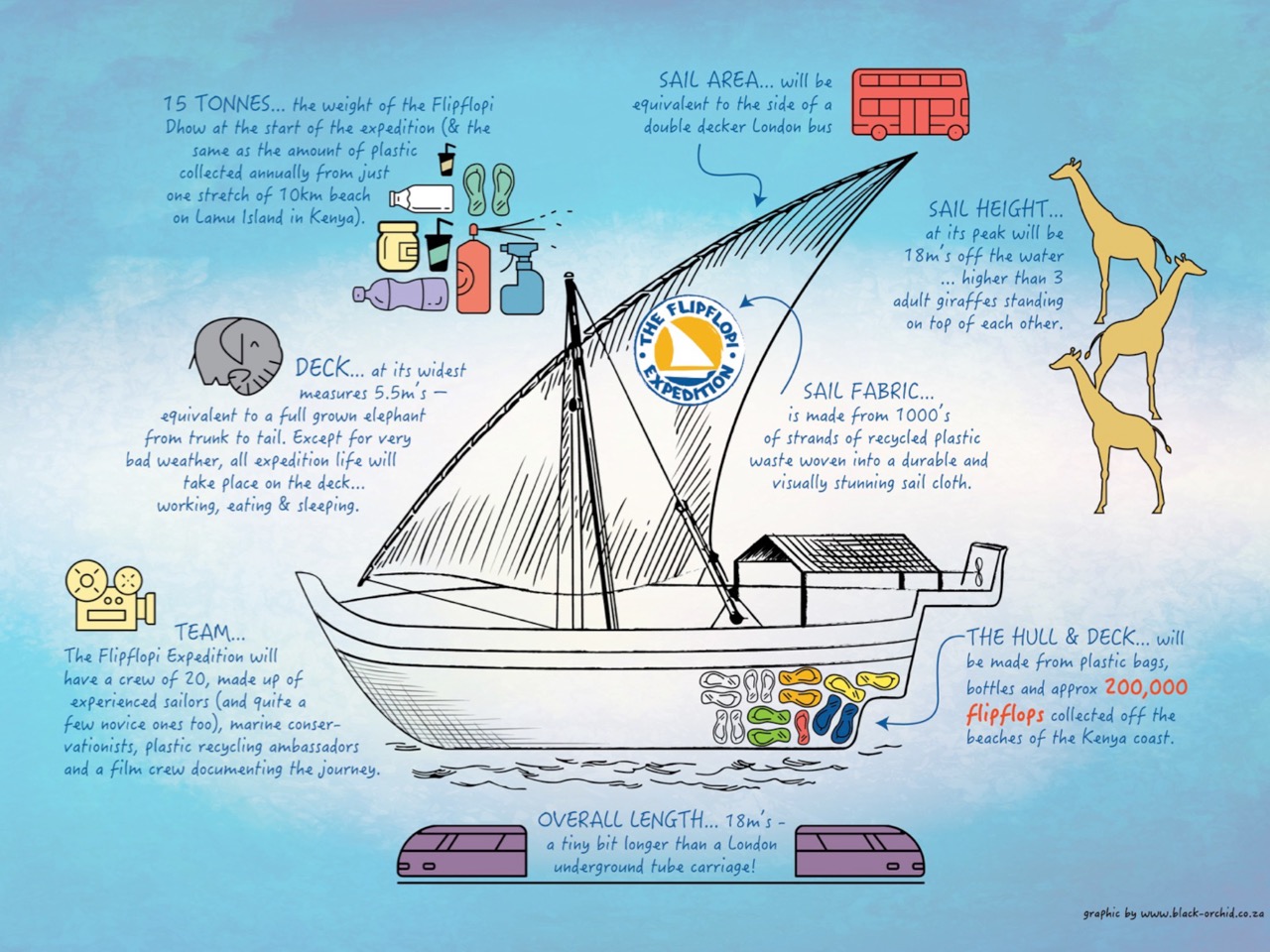40% of all the waste collected on the beaches were flip-flops. This is where the project got its name from and why flip-flops were an obligatory element of this boat.