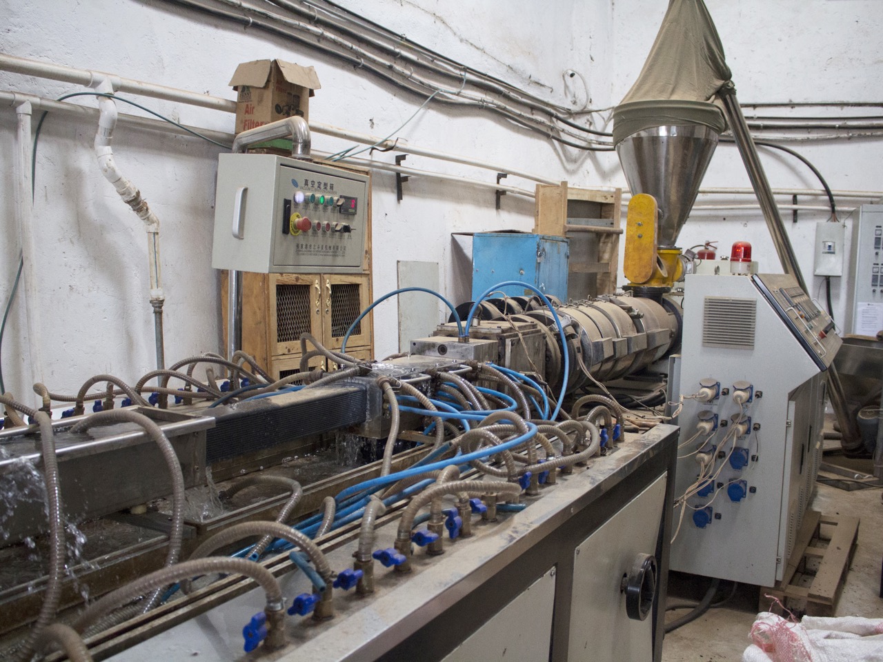 It's a quite common practice there to mix in sawdust to make the material stiffer and cheaper to produce (but that material mix also breaks much easier than pure plastic). It took a couple of attempts, but in the end we managed to get the 100% recycled plastic planks.