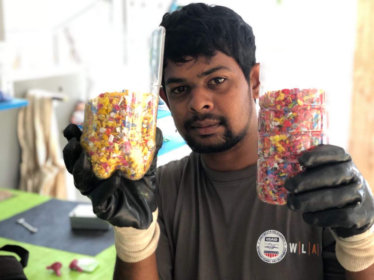 We decided to focus on collecting plastic from the tourism related industry as they have such a vast amount of PET bottles which happen to be in high demand by the recycling industry in Sri Lanka to be turned into recycled polyester yarn. Also, the handling is relatively easy as the bottles are clean and the bottle caps are great for the [filtered] machines. Also it solves the problem of PET bottles clogging up waste management that has to go to landfill.