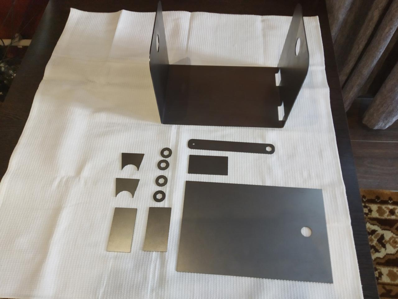 for the base of the mechanism, the base and small parts - structural steel 2 mm; for walls - plexiglass 2 mm; for handles - wood or plastic; for the roof - sheet steel 0.4 mm.