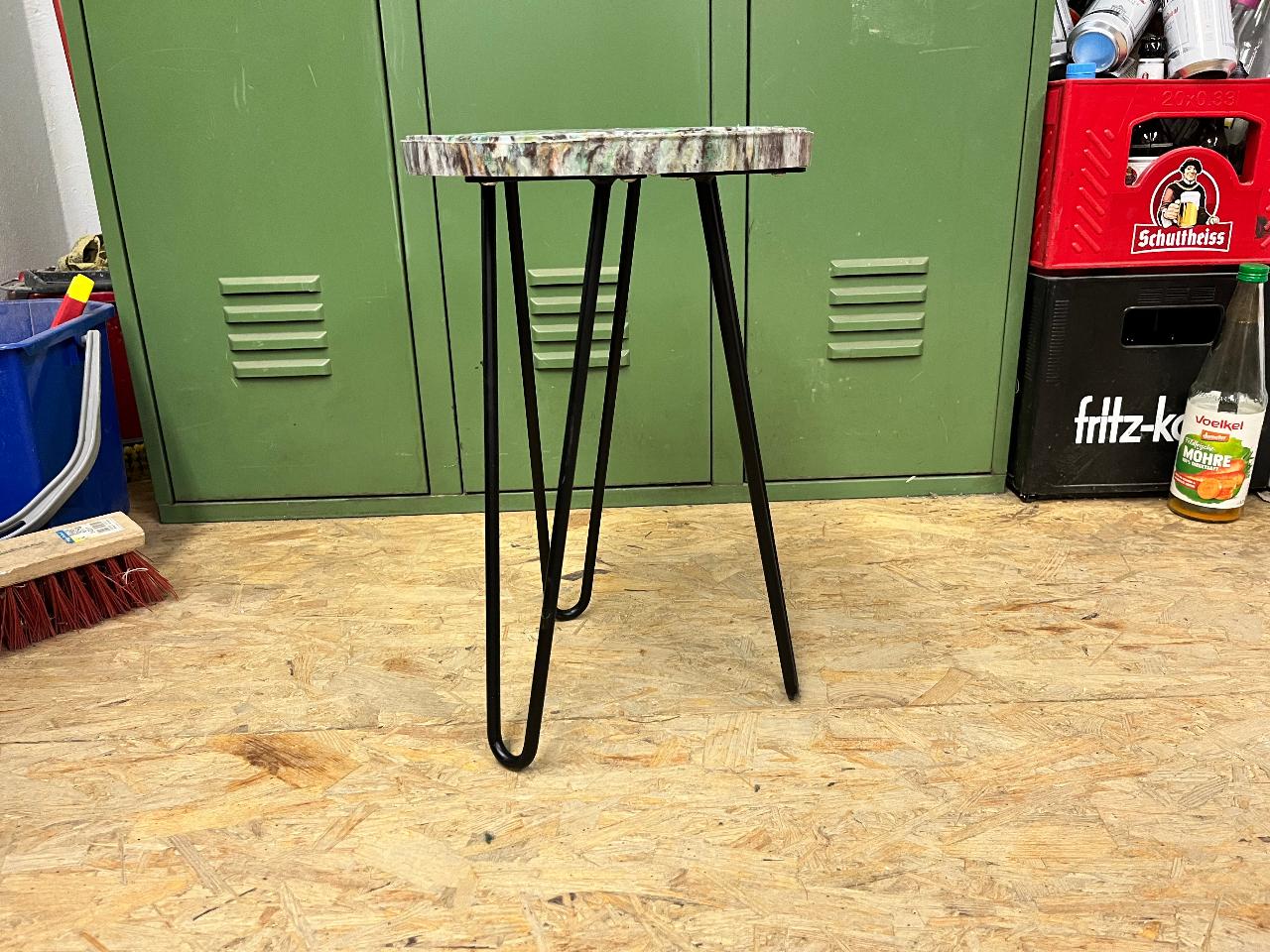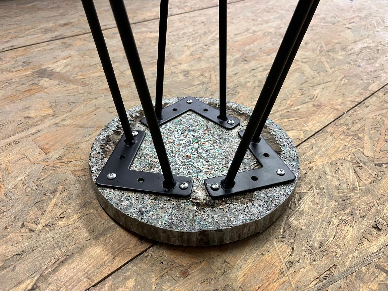 First we experimented with wooden legs. However, it is hard to fix them properly to the seat. That´s why in the end we decided to use metal legs that we simply screw below the seat. Still looks great!
