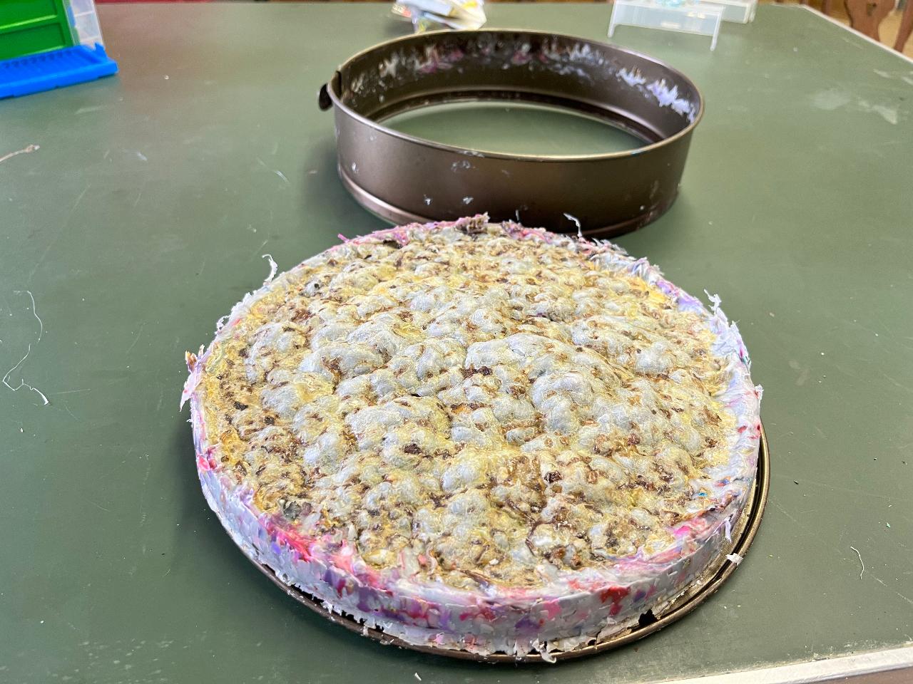 Attention: Check if the bottom of the cake tin is even or not. It will later on shape the top of your stool.