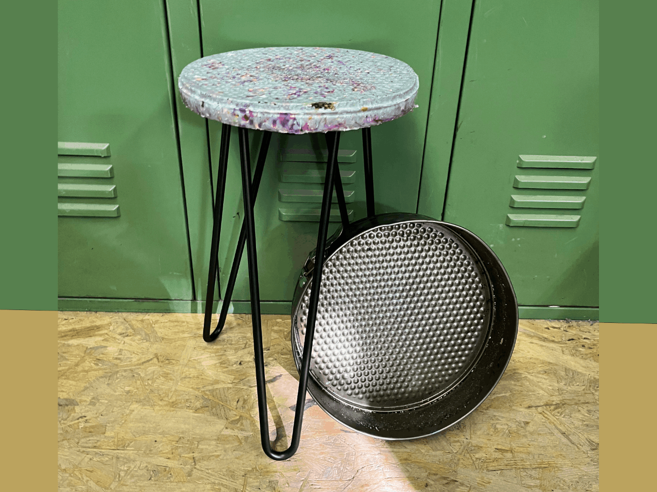 In this how to we want to share with you how to prepare a stool with a low cost mould. It is a simple cake tin instead of an engineered mould that works pretty well.