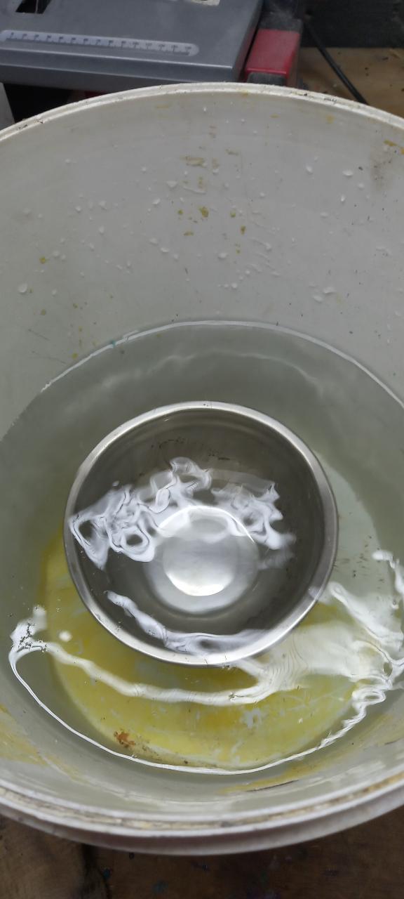 Equalize the balance to make an even bowl and put it straight into the bucket with water;