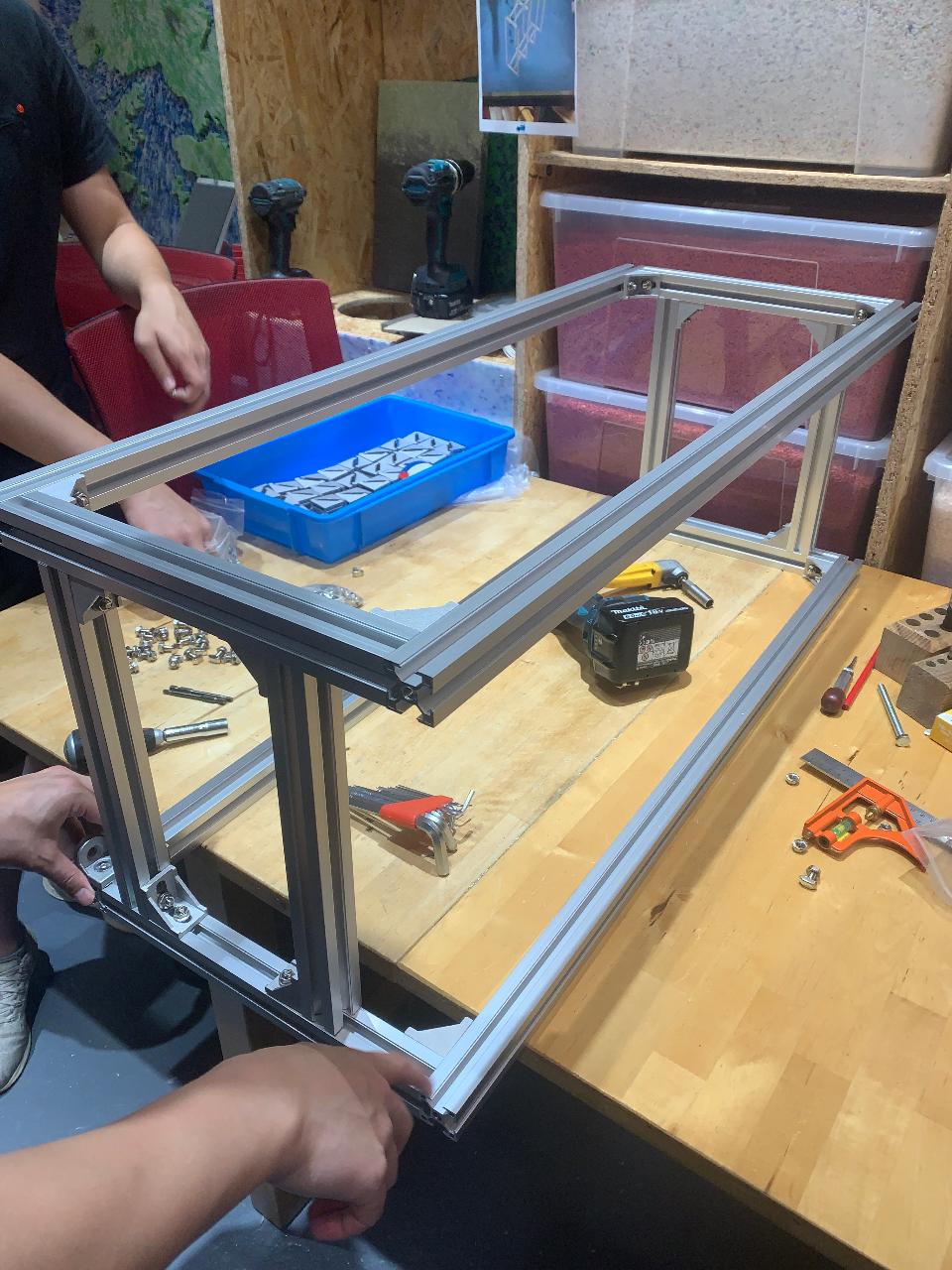 After the frame is done, fix the panel onto the frame with screws and corner fixing plate.