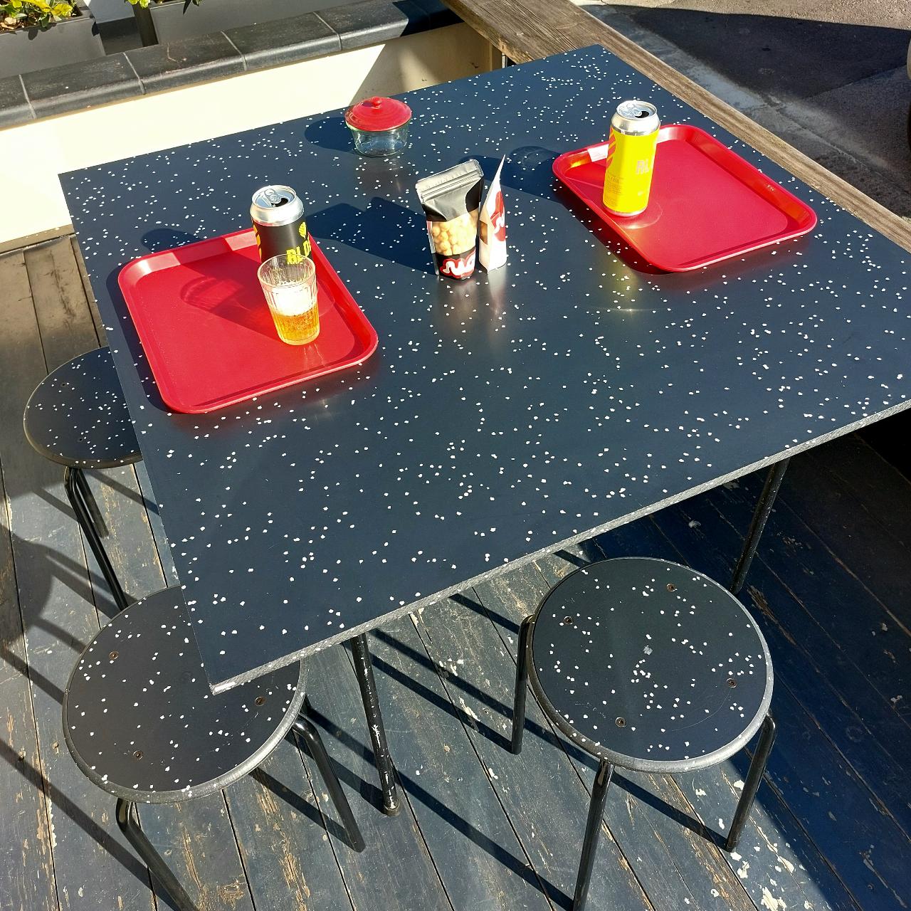 Now all that remains is to drill the recycled plastic discs to be fixed to a metal base, and here is our stool
