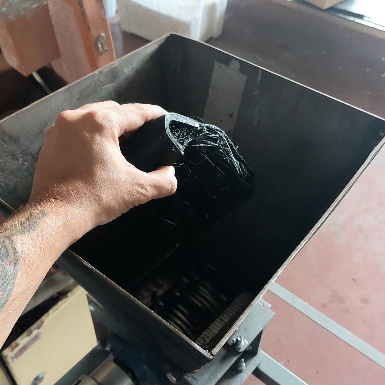 At this point you have to shred the material and collect it. Decide how many times to pass it from the shredder according to the size you want to collect