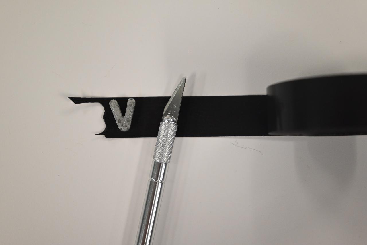 When the backs are flat, roll out some magnetic tape and lay the letters on the sticky side of the tape. Use the Exacto knife to cut the magnetic tape off.