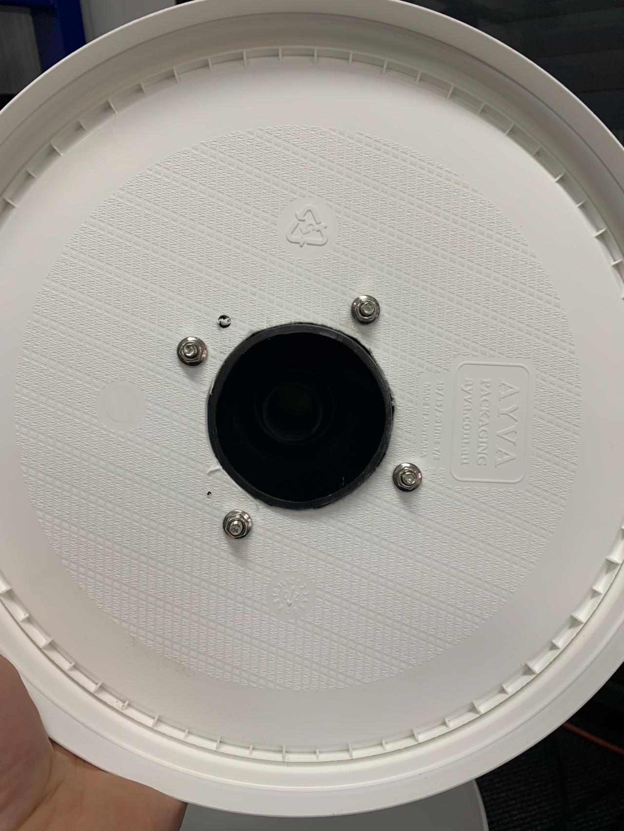 Cyclone: • Place the template (included with cyclone) in the middle of the lid • Mark and drill the bolt holes • Mark and cut centre hole • Connect the cyclone using the nuts and bolts provided (see images in Step 3)
