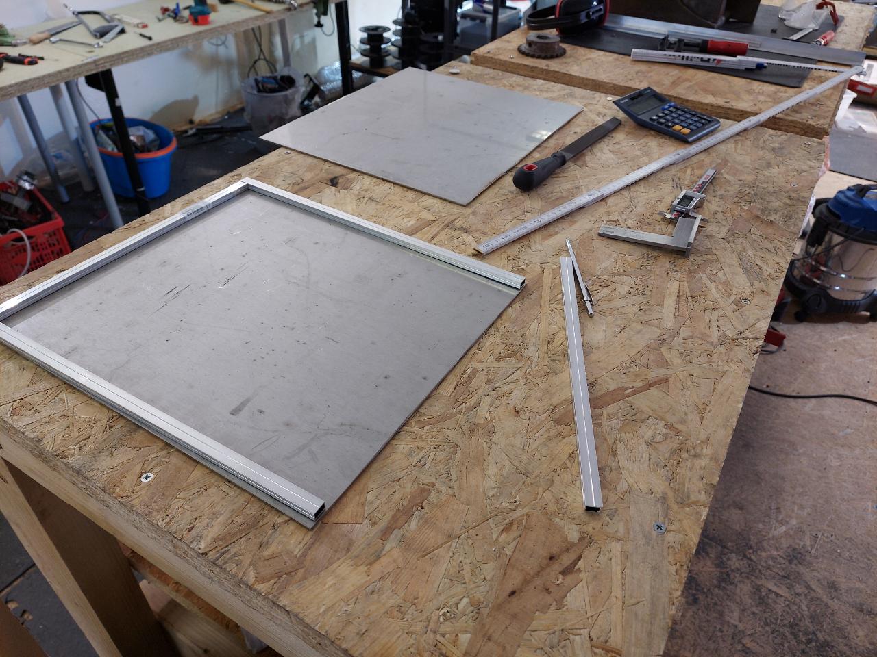 Material: 2 pcs 350x400x3mm galvanized metal sheet 2pcs 12,5x7,5x400mm Aluminium Profile 2pcs 12,5x7,5x325mm Aluminium Profile