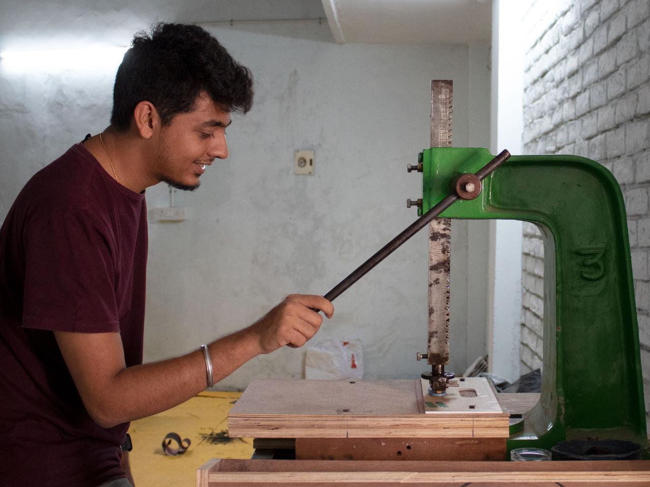 For pressing we like to use arbor press. It works fast and are easy to use/find. Put the product underneath apply some fore and take it out. You can get really fast here