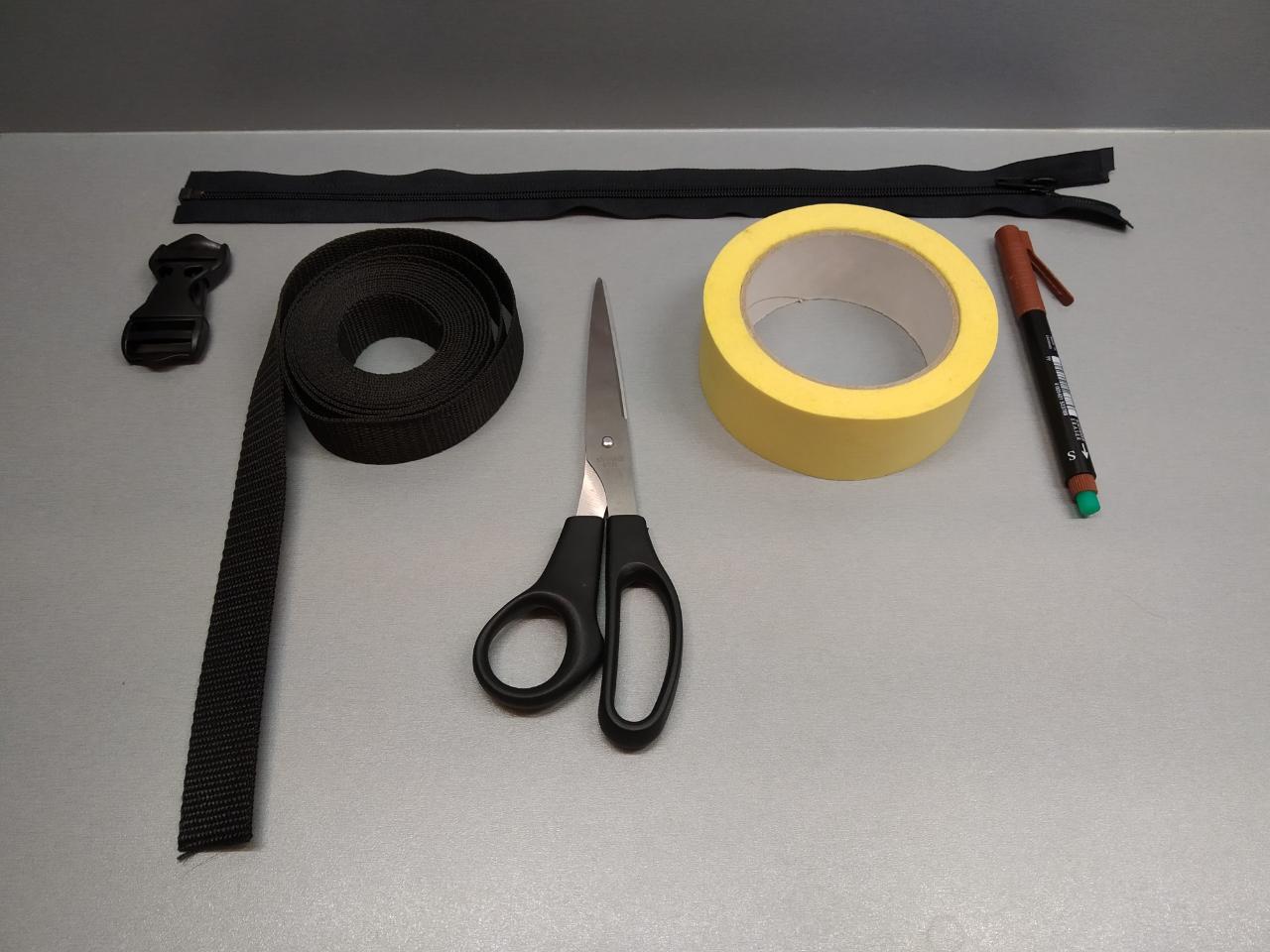 Tools: Iron Ironing board Sewing machine Sewing pins Scissors Marker Lighter