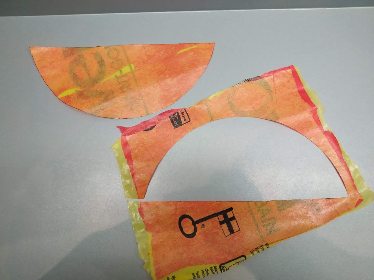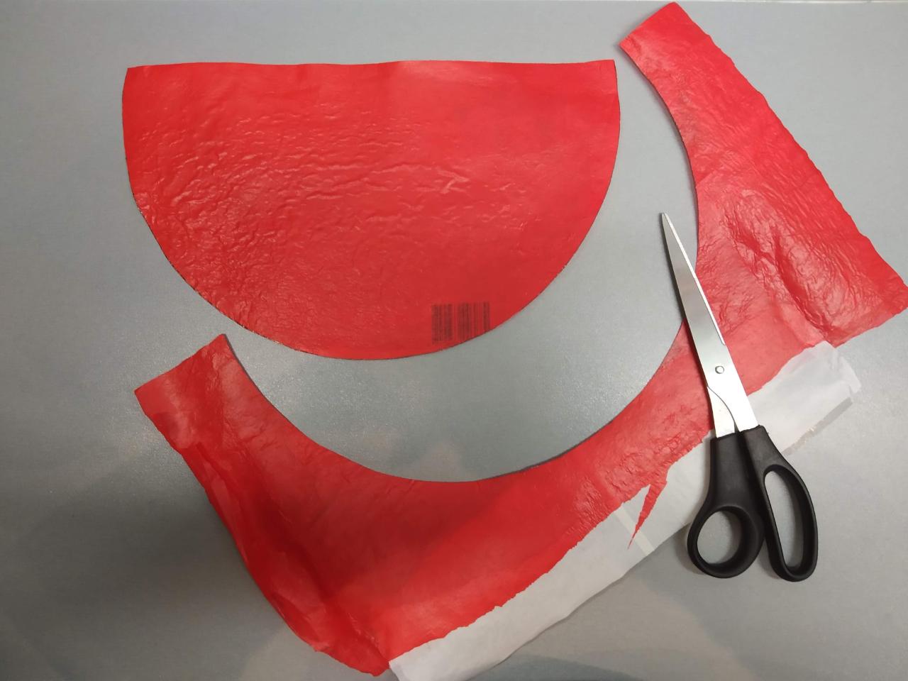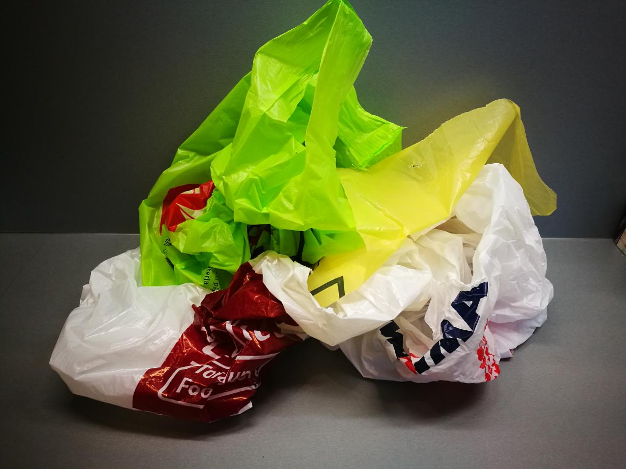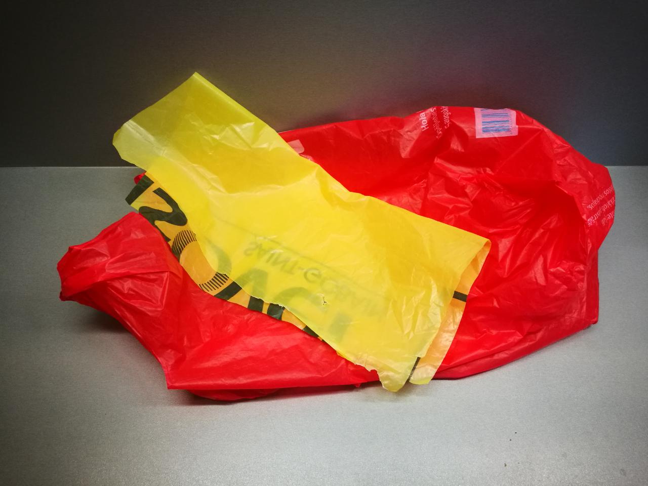 In this project we will used LDPE (Light Density Poly Ethylene) - number 4 in the material type symbol. Hence, we will use a red and a yellow bags, shown in the photos.