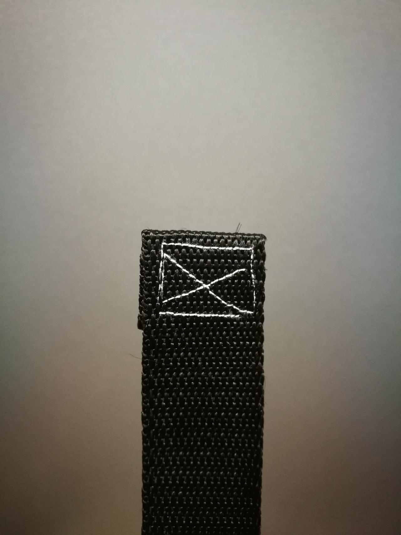 The strap is cut into two equal pieces. Before we sew them on, it is necessary to make sure they do not come loose. To do that use the lighter, accurately heat up the ends of the strap. Do not put fire directly on the strap but rather have it close by.