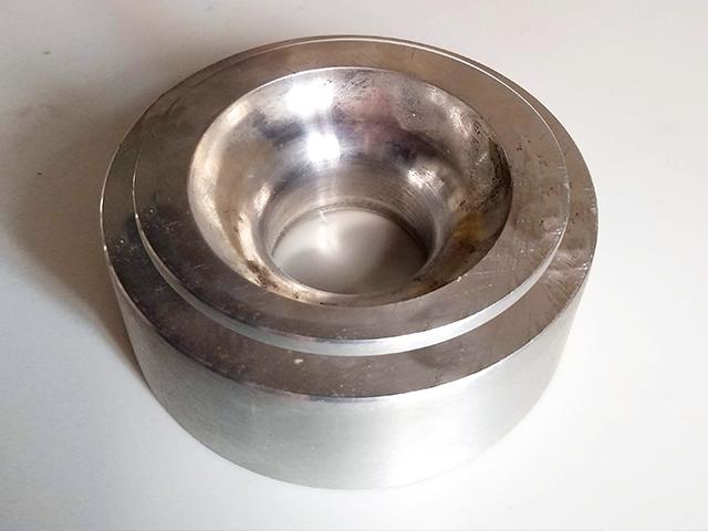 Turn one face of the flange to create a 3” diameter guide to fit the mold body no. 1: (See drawings page 4)