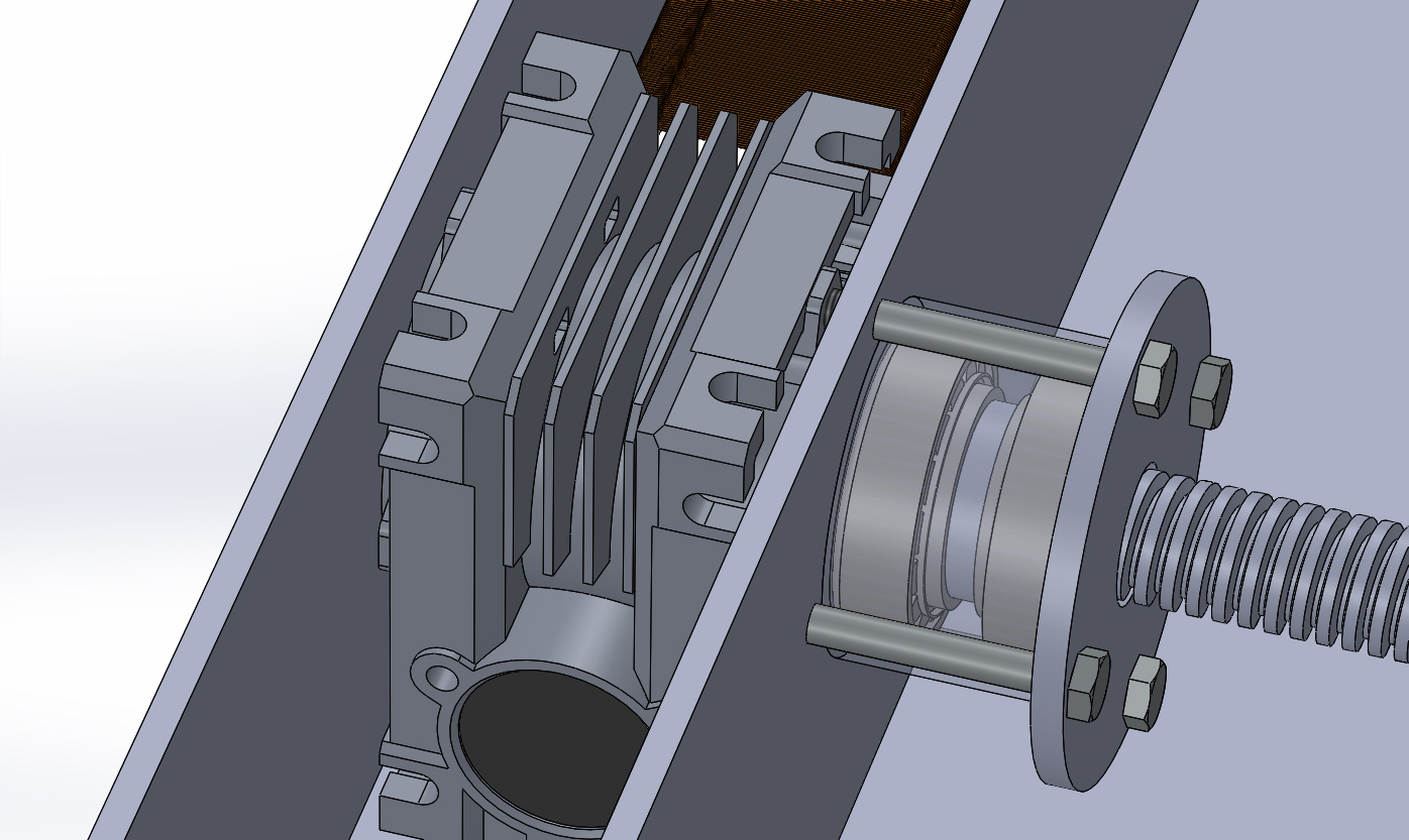At the other end, the screw is turned down to 10mm, to locate in a 6204 bearing with snap ring. screw other end