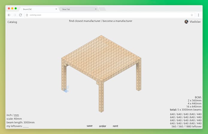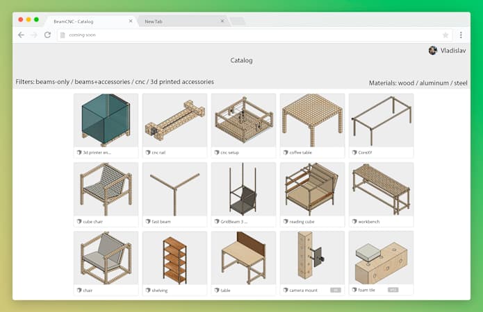 While web is under development I`m starting a Facebook page for people to share thier ideas. And you can download a template file for mockups in Fusion 360 (copy-paste beams of needed length for your design. By default they are hidden, so you can`t see them on preview)